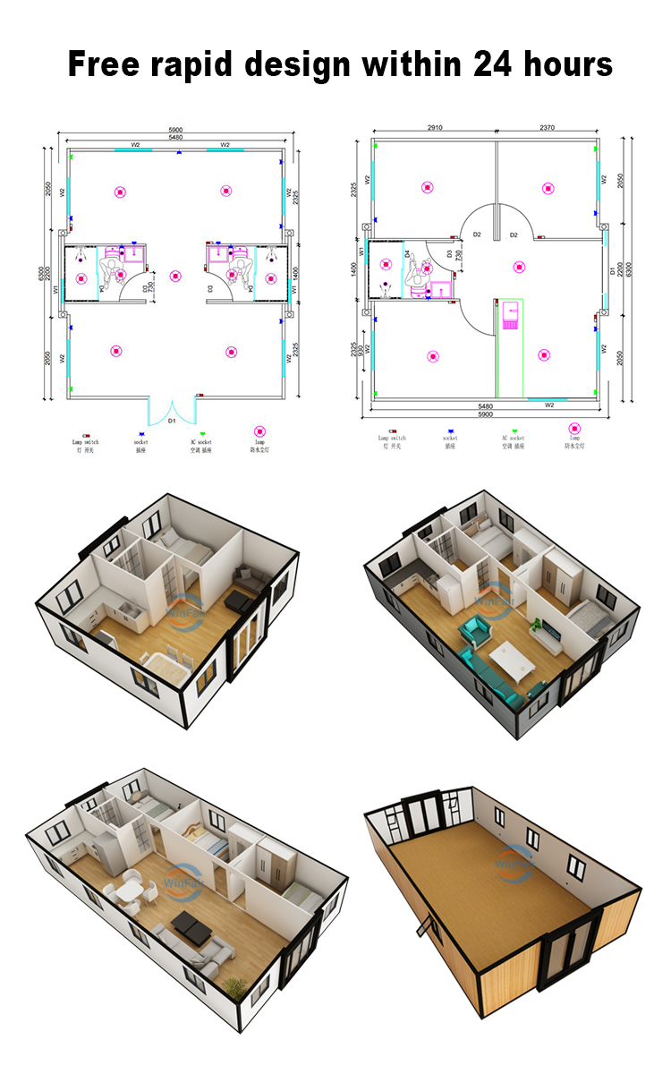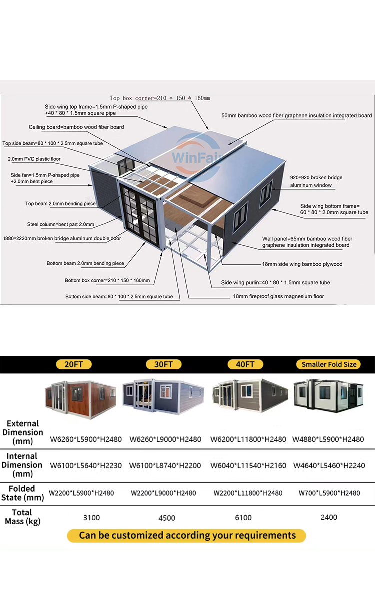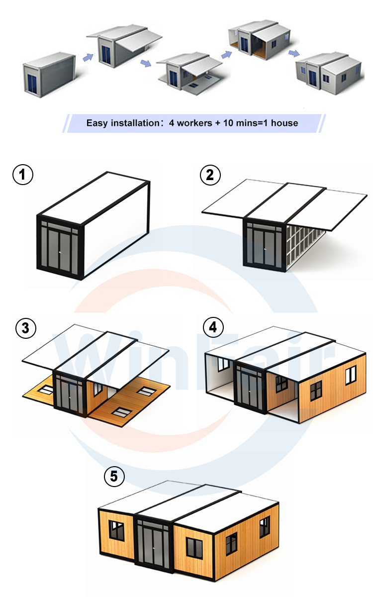 • WinFair China Luxury Mini Tiny Module House Modular Two Bedroom Prefab Prefabricated Mobile Expandable Container House for Sale