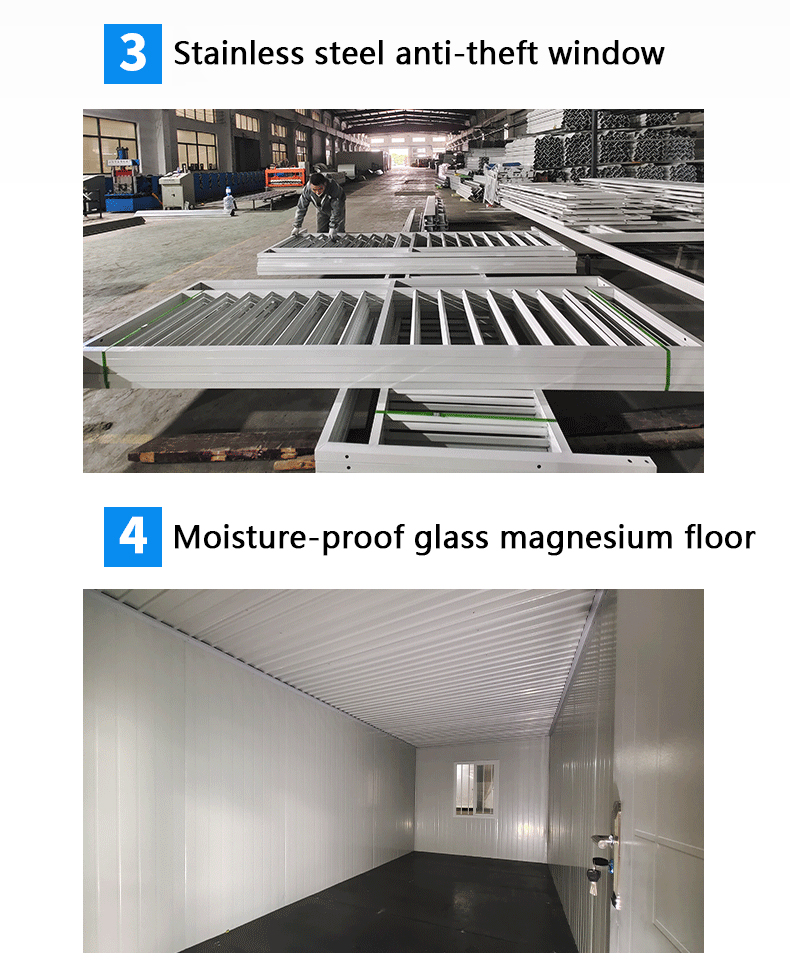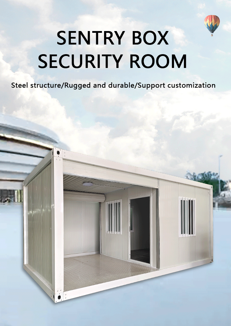 Features and uses Rugged and durable : has excellent robustness and durability, can withstand a variety of harsh environmental and climatic conditions . Strong flexibility : can be flexibly customized according to actual needs, including size, shape, color and internal facilities, etc., to meet the needs of different places and uses . Fast installation : the installation process is relatively simple and fast, does not require complex construction and decoration, can greatly shorten the construction period and cost . Specific use security post : can be used as the office and rest place for security personnel, providing a safe and comfortable working environment . Ticket booth : in scenic spots, amusement parks and other places, can be used as a ticket booth, convenient for tourists to purchase tickets and information . Temporary office space : where temporary office space is required.